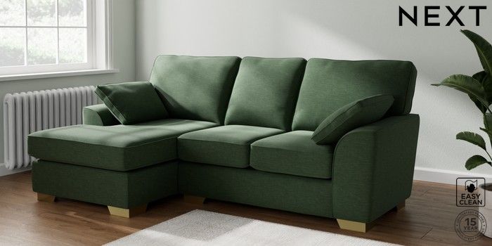 6.12.1 Buy Stamford Highback Small Sofa Chaise - Left Hand Fine Chenille Easy Clean Mid Khaki Green Large Square Angle - Brushed Brass from the Next UK online shop Click here to use our accessible website