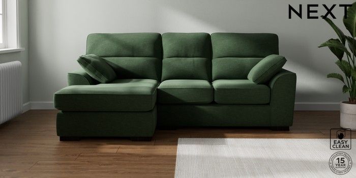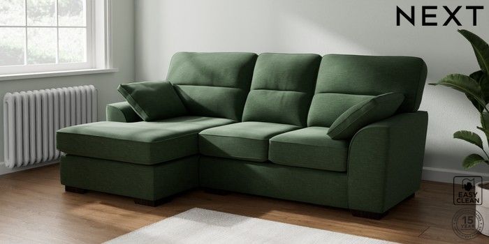 7.2.10 Buy Stamford Highback Small Sofa Chaise - Left Hand Fine Chenille Easy Clean Mid Khaki Green Large Square Angle - Dark from the Next UK online shop Click here to use our accessible website