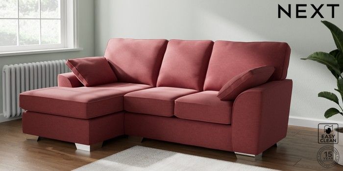 6.12.1 Buy Stamford Highback Small Sofa Chaise - Left Hand Fine Chenille Easy Clean Mid Pink Large Square Angle - Chrome Metal from the Next UK online shop Click here to use our accessible website