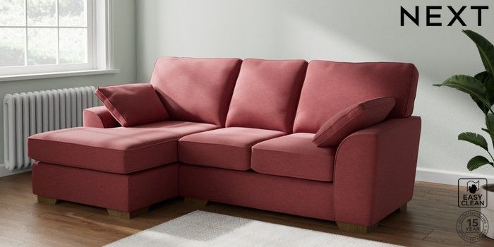 6.12.1 Buy Stamford Highback Small Sofa Chaise - Left Hand Fine Chenille Easy Clean Mid Pink Large Square Angle - Mid from the Next UK online shop Click here to use our accessible website
