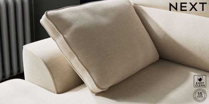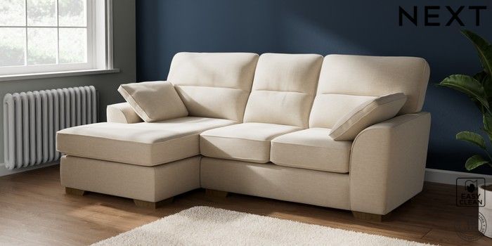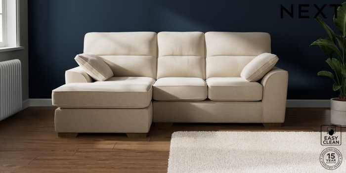7.2.10 Buy Stamford Highback Small Sofa Chaise - Left Hand Fine Chenille Easy Clean Oyster Large Square Angle - Mid from the Next UK online shop Click here to use our accessible website