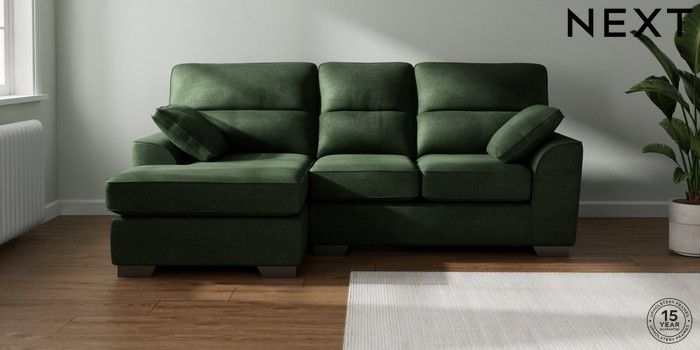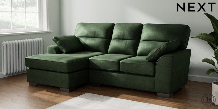 7.2.10 Buy Stamford Highback Small Sofa Chaise - Left Hand Luxe Chenille Dark Green Large Square Angle - Gunmetal from the Next UK online shop Click here to use our accessible website