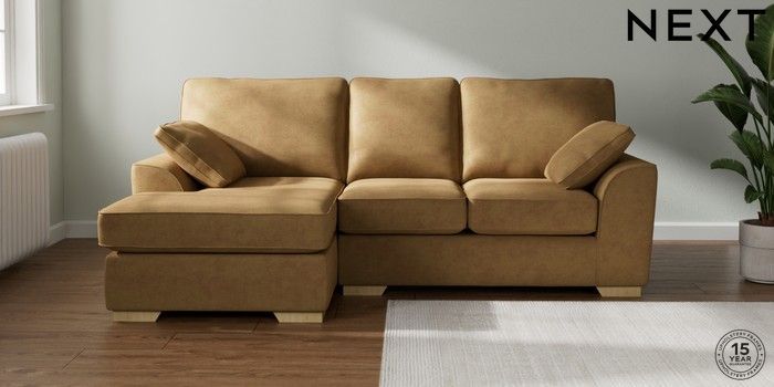 7.2.6 Buy Stamford Highback Small Sofa Chaise - Left Hand Luxe Chenille Honey Yellow Large Square Angle - Light from the Next UK online shop Click here to use our accessible website