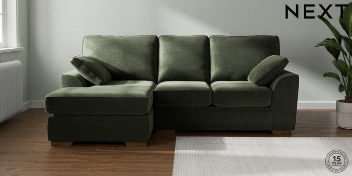 7.2.6 Buy Stamford Highback Small Sofa Chaise - Left Hand Luxe Chenille Mid Green Large Square Angle - Mid from the Next UK online shop Click here to use our accessible website