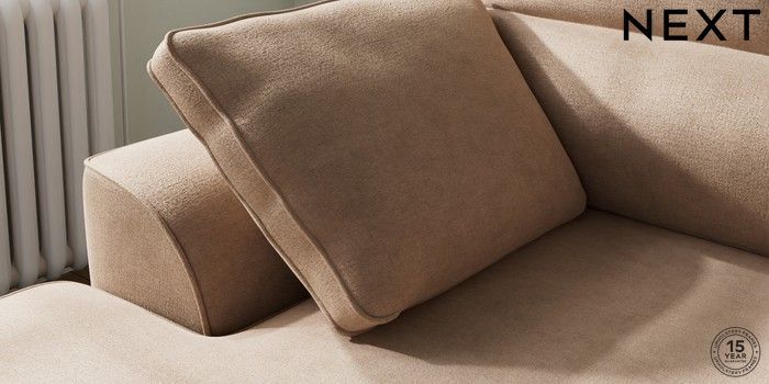 7.2.10 Buy Stamford Highback Small Sofa Chaise - Left Hand Luxe Chenille Mid Natural Large Square Angle - Chrome Metal from the Next UK online shop Click here to use our accessible website