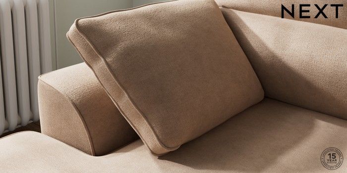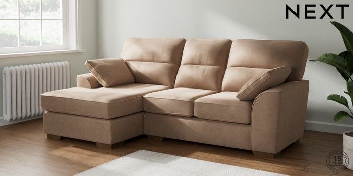 7.2.10 Buy Stamford Highback Small Sofa Chaise - Left Hand Luxe Chenille Mid Natural Large Square Angle - Mid from the Next UK online shop Click here to use our accessible website