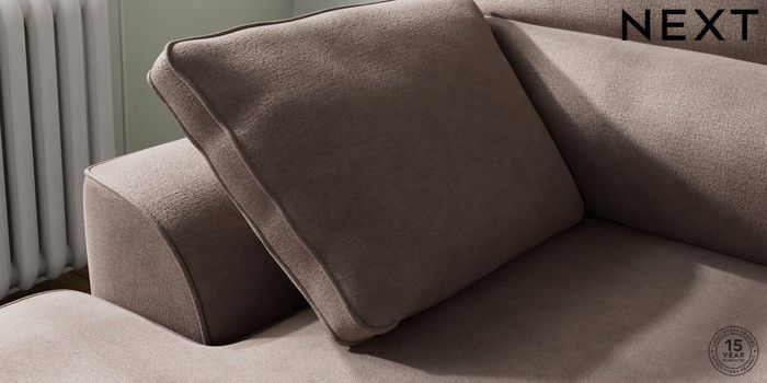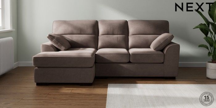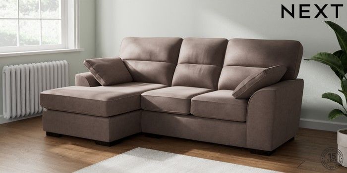7.2.10 Buy Stamford Highback Small Sofa Chaise - Left Hand Luxe Chenille Mink Brown Large Square Angle - Dark from the Next UK online shop Click here to use our accessible website