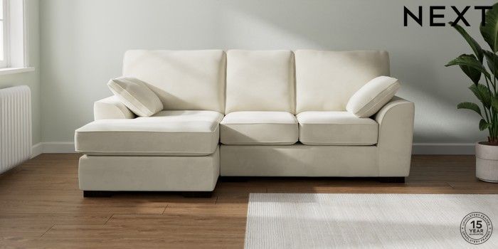 7.0.3 Buy Stamford Highback Small Sofa Chaise - Left Hand Luxe Chenille Oyster Large Square Angle - Dark from the Next UK online shop Click here to use our accessible website