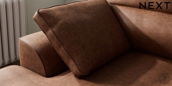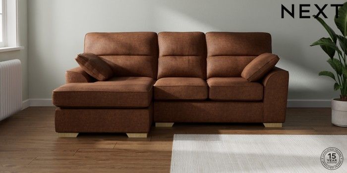 7.3.1 Buy Stamford Highback Small Sofa Chaise - Left Hand Monza Faux Leather Easy Clean Chestnut Brown Large Square Angle - Light from the Next UK online shop Click here to use our accessible website