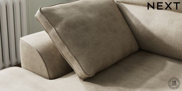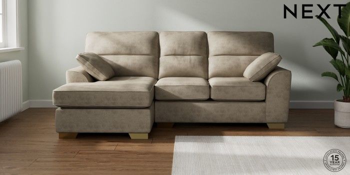 7.3.1 Buy Stamford Highback Small Sofa Chaise - Left Hand Monza Faux Leather Easy Clean Mink Brown Large Square Angle - Brushed Brass from the Next UK online shop Click here to use our accessible website