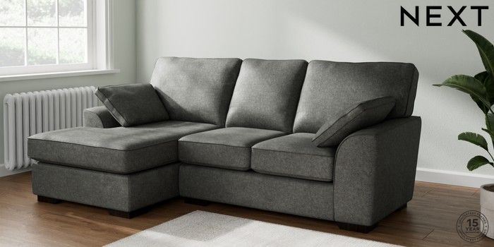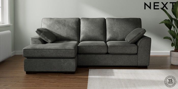 7.2.10 Buy Stamford Highback Small Sofa Chaise - Left Hand Plush Chenille Dark Grey Large Square Angle - Dark from the Next UK online shop Click here to use our accessible website