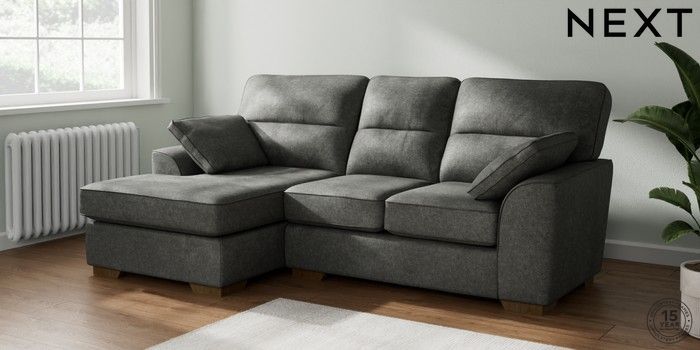 7.2.10 Buy Stamford Highback Small Sofa Chaise - Left Hand Plush Chenille Dark Grey Large Square Angle - Mid from the Next UK online shop Click here to use our accessible website