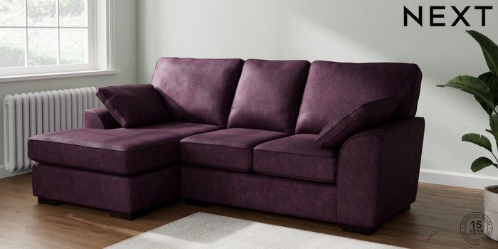 6.12.1 Buy Stamford Highback Small Sofa Chaise - Left Hand Plush Chenille Dark Plum Purple Large Square Angle - Dark from the Next UK online shop Click here to use our accessible website