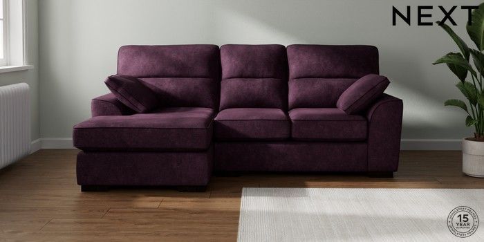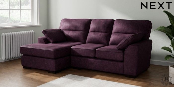 7.2.10 Buy Stamford Highback Small Sofa Chaise - Left Hand Plush Chenille Dark Plum Purple Large Square Angle - Dark from the Next UK online shop Click here to use our accessible website