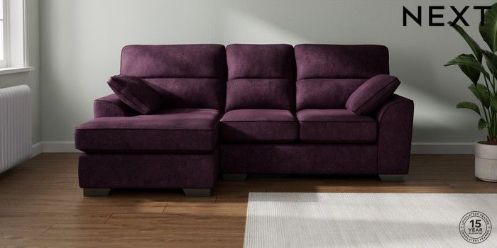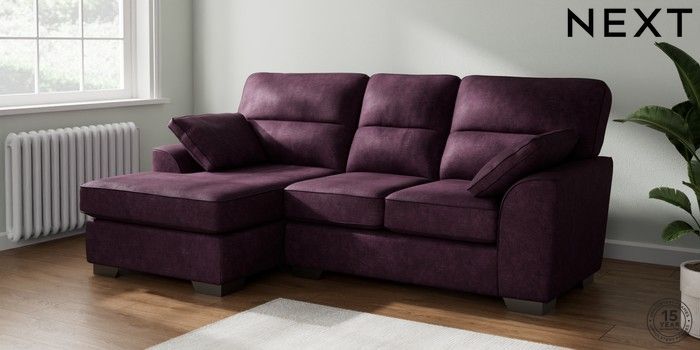 7.3.1 Buy Stamford Highback Small Sofa Chaise - Left Hand Plush Chenille Dark Plum Purple Large Square Angle - Gunmetal from the Next UK online shop Click here to use our accessible website