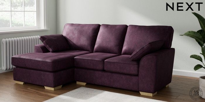 6.12.1 Buy Stamford Highback Small Sofa Chaise - Left Hand Plush Chenille Dark Plum Purple Large Square Angle - Light from the Next UK online shop Click here to use our accessible website