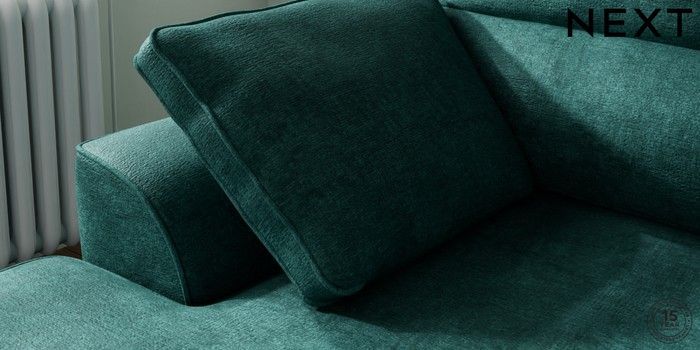 7.2.10 Buy Stamford Highback Small Sofa Chaise - Left Hand Plush Chenille Dark Teal Green Large Square Angle - Chrome Metal from the Next UK online shop Click here to use our accessible website