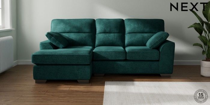 7.3.1 Buy Stamford Highback Small Sofa Chaise - Left Hand Plush Chenille Dark Teal Green Large Square Angle - Gunmetal from the Next UK online shop Click here to use our accessible website
