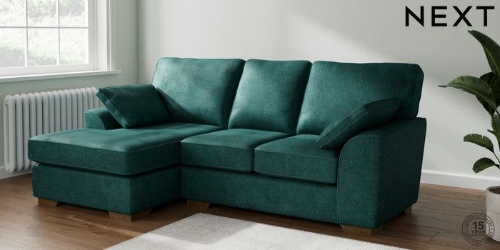 6.12.1 Buy Stamford Highback Small Sofa Chaise - Left Hand Plush Chenille Dark Teal Green Large Square Angle - Mid from the Next UK online shop Click here to use our accessible website