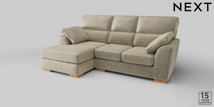6.12.1 Buy Stamford Highback Small Sofa Chaise - Left Hand Plush Chenille Light Natural Large Square Angle - Light from the Next UK online shop Click here to use our accessible website