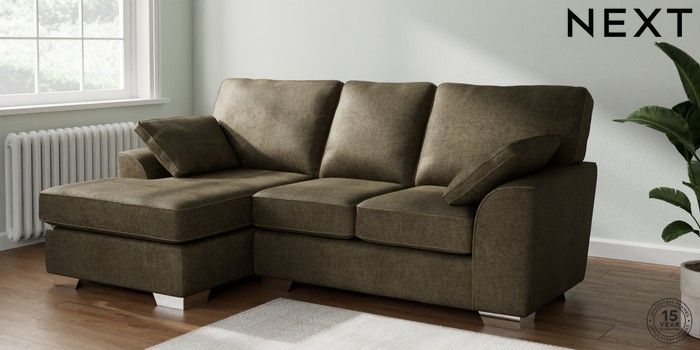 6.12.1 Buy Stamford Highback Small Sofa Chaise - Left Hand Plush Chenille Moss Green Large Square Angle - Chrome Metal from the Next UK online shop Click here to use our accessible website