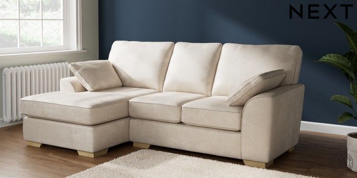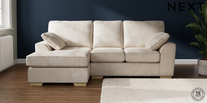 7.2.6 Buy Stamford Highback Small Sofa Chaise - Left Hand Plush Chenille Oyster Large Square Angle - Light from the Next UK online shop Click here to use our accessible website