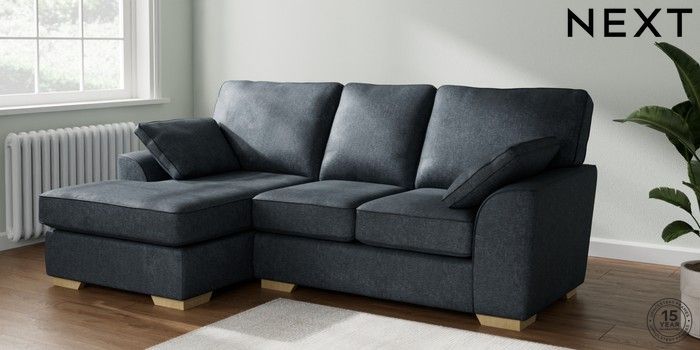 7.2.10 Buy Stamford Highback Small Sofa Chaise - Left Hand Plush Chenille Slate Blue Large Square Angle - Light from the Next UK online shop Click here to use our accessible website