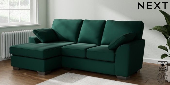 6.12.1 Buy Stamford Highback Small Sofa Chaise - Left Hand Plush Velvet Easy Clean Bottle Green Large Square Angle - Gunmetal from the Next UK online shop Click here to use our accessible website