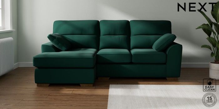 7.2.10 Buy Stamford Highback Small Sofa Chaise - Left Hand Plush Velvet Easy Clean Bottle Green Large Square Angle - Mid from the Next UK online shop Click here to use our accessible website