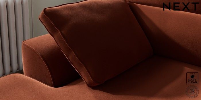 7.3.1 Buy Stamford Highback Small Sofa Chaise - Left Hand Plush Velvet Easy Clean Ginger Orange Large Square Angle - Gunmetal from the Next UK online shop Click here to use our accessible website