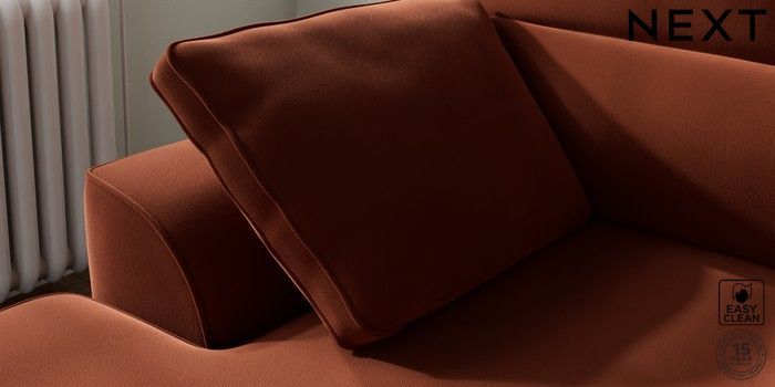 7.2.10 Buy Stamford Highback Small Sofa Chaise - Left Hand Plush Velvet Easy Clean Ginger Orange Large Square Angle - Mid from the Next UK online shop Click here to use our accessible website