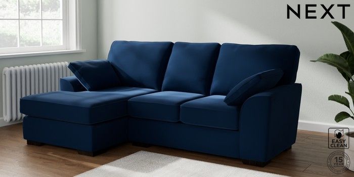 6.12.1 Buy Stamford Highback Small Sofa Chaise - Left Hand Plush Velvet Easy Clean Navy Blue Large Square Angle - Dark from the Next UK online shop Click here to use our accessible website