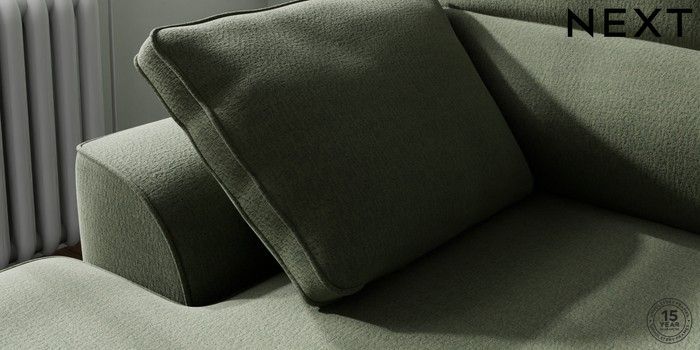 7.3.1 Buy Stamford Highback Small Sofa Chaise - Left Hand Relaxed Linen Look Dark Green Large Square Angle - Brushed Brass from the Next UK online shop Click here to use our accessible website
