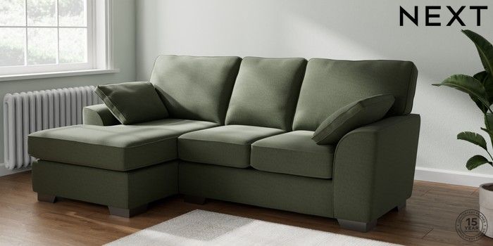 6.12.13 Buy Stamford Highback Small Sofa Chaise - Left Hand Relaxed Linen Look Dark Green Large Square Angle - Gunmetal from the Next UK online shop Click here to use our accessible website