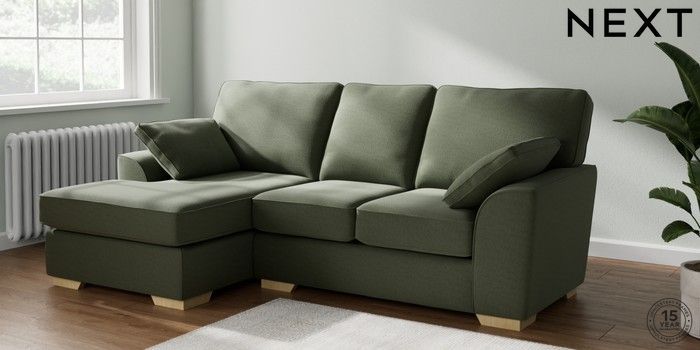 6.12.13 Buy Stamford Highback Small Sofa Chaise - Left Hand Relaxed Linen Look Dark Green Large Square Angle - Light from the Next UK online shop Click here to use our accessible website