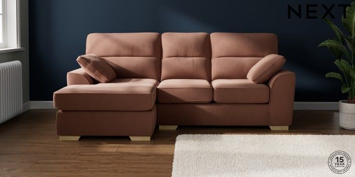 7.2.10 Buy Stamford Highback Small Sofa Chaise - Left Hand Relaxed Linen Look Light Rust Brown Large Square Angle - Light from the Next UK online shop Click here to use our accessible website