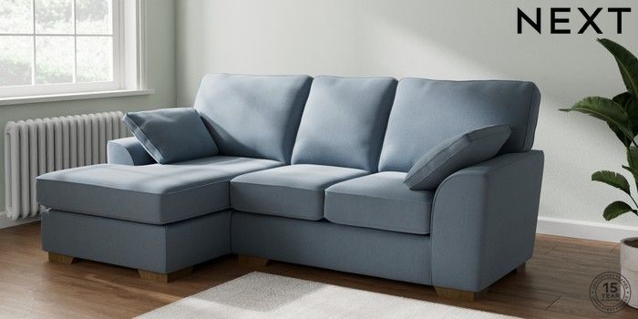 6.12.13 Buy Stamford Highback Small Sofa Chaise - Left Hand Relaxed Linen Look Mid Blue Large Square Angle - Mid from the Next UK online shop Click here to use our accessible website