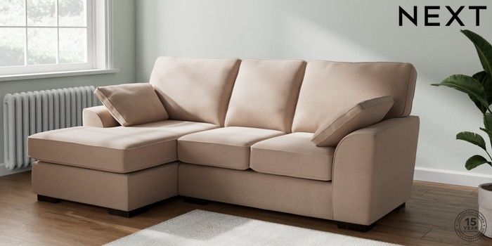 6.12.13 Buy Stamford Highback Small Sofa Chaise - Left Hand Relaxed Linen Look Mid Natural Large Square Angle - Dark from the Next UK online shop Click here to use our accessible website