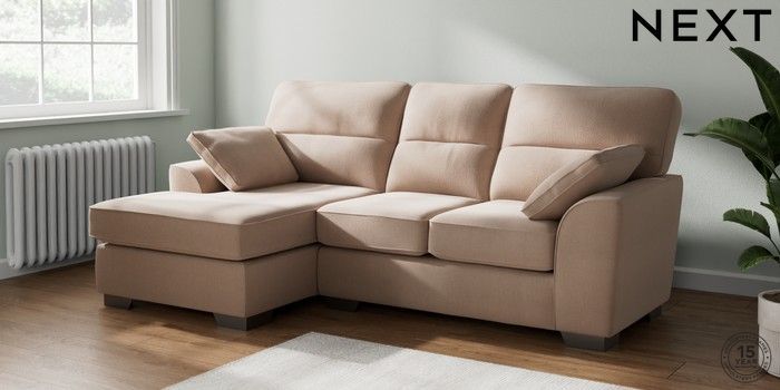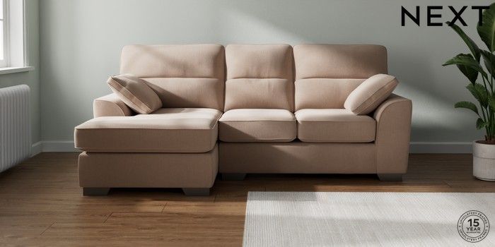 7.3.1 Buy Stamford Highback Small Sofa Chaise - Left Hand Relaxed Linen Look Mid Natural Large Square Angle - Gunmetal from the Next UK online shop Click here to use our accessible website