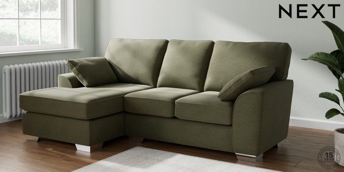 6.12.1 Buy Stamford Highback Small Sofa Chaise - Left Hand Ripple Chenille Mid Moss Green Large Square Angle - Chrome Metal from the Next UK online shop Click here to use our accessible website