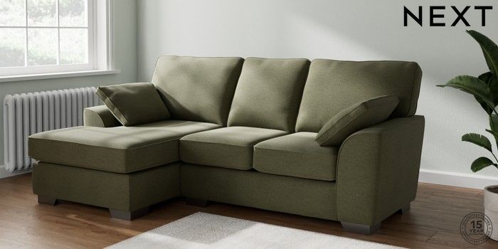 6.12.1 Buy Stamford Highback Small Sofa Chaise - Left Hand Ripple Chenille Mid Moss Green Large Square Angle - Gunmetal from the Next UK online shop Click here to use our accessible website