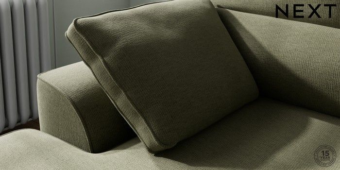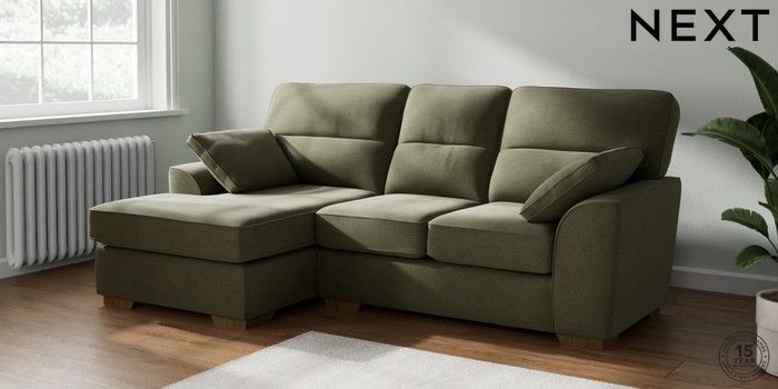7.2.10 Buy Stamford Highback Small Sofa Chaise - Left Hand Ripple Chenille Mid Moss Green Large Square Angle - Mid from the Next UK online shop Click here to use our accessible website