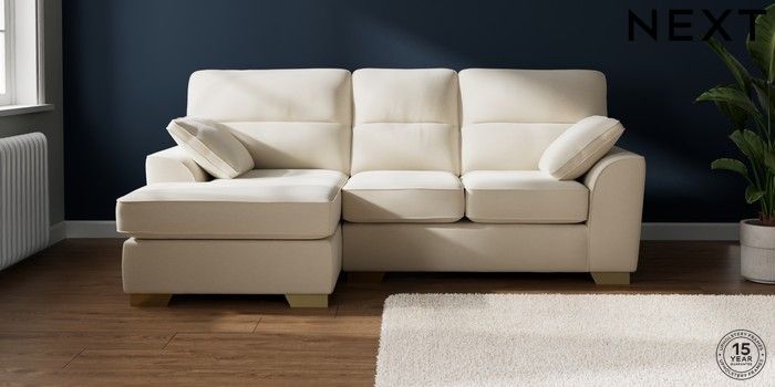 7.2.10 Buy Stamford Highback Small Sofa Chaise - Left Hand Ripple Chenille Oyster Large Square Angle - Brushed Brass from the Next UK online shop Click here to use our accessible website