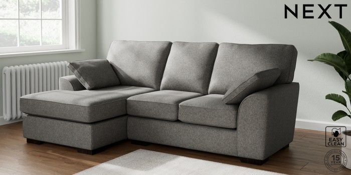 6.12.1 Buy Stamford Highback Small Sofa Chaise - Left Hand Tweedy Blend Easy Clean Dark Grey Large Square Angle - Dark from the Next UK online shop Click here to use our accessible website