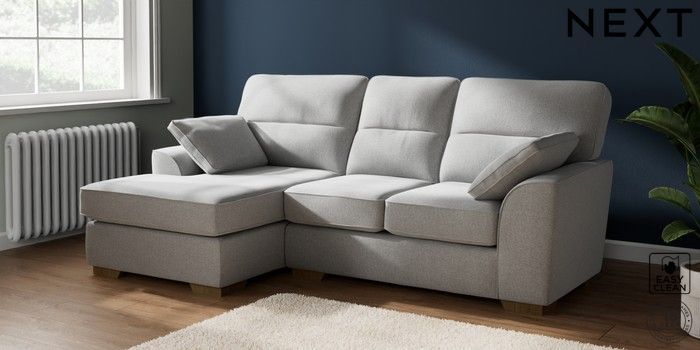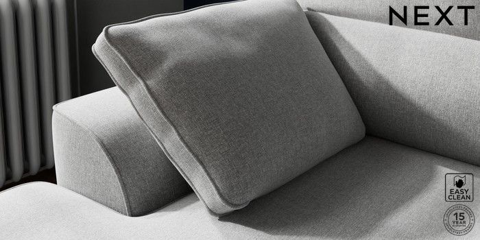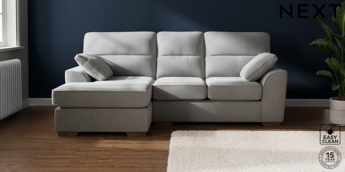7.2.10 Buy Stamford Highback Small Sofa Chaise - Left Hand Tweedy Blend Easy Clean Light Silver Grey Large Square Angle - Mid from the Next UK online shop Click here to use our accessible website