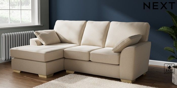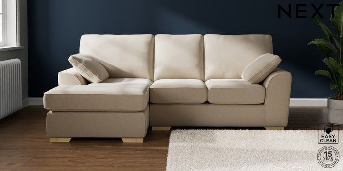 7.2.6 Buy Stamford Highback Small Sofa Chaise - Left Hand Tweedy Blend Easy Clean Oyster Large Square Angle - Light from the Next UK online shop Click here to use our accessible website