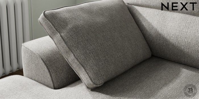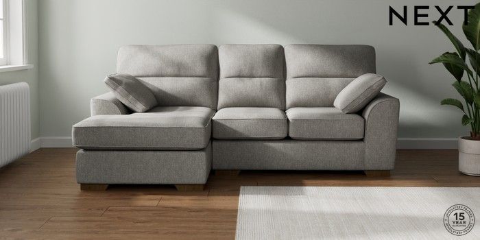 7.2.10 Buy Stamford Highback Small Sofa Chaise - Left Hand Tweedy Chenille Mid Grey Large Square Angle - Mid from the Next UK online shop Click here to use our accessible website