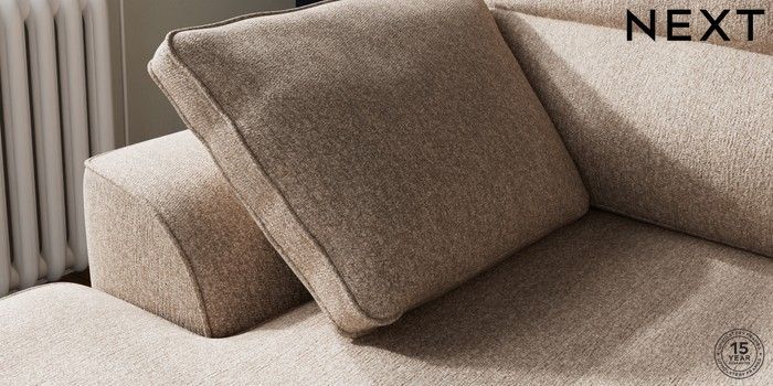7.3.1 Buy Stamford Highback Small Sofa Chaise - Left Hand Tweedy Chenille Mid Natural Large Square Angle - Chrome Metal from the Next UK online shop Click here to use our accessible website