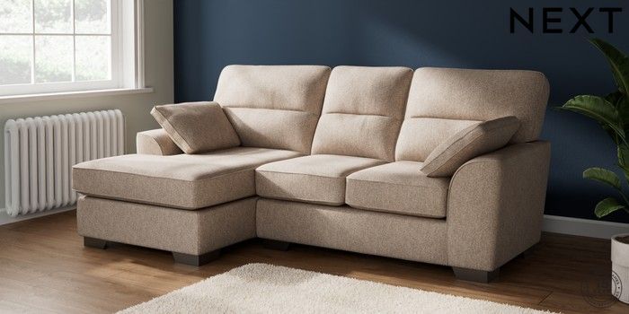 7.3.1 Buy Stamford Highback Small Sofa Chaise - Left Hand Tweedy Chenille Mid Natural Large Square Angle - Gunmetal from the Next UK online shop Click here to use our accessible website