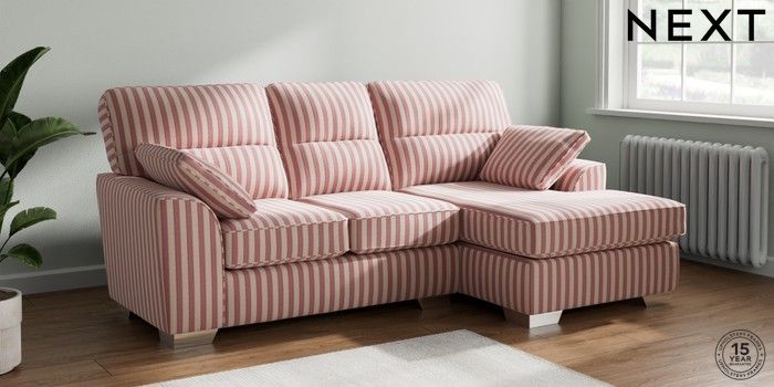 7.3.1 Buy Stamford Highback Small Sofa Chaise - Right Hand Bold Chenille Stripe Dark Pink Large Square Angle - Chrome Metal from the Next UK online shop Click here to use our accessible website